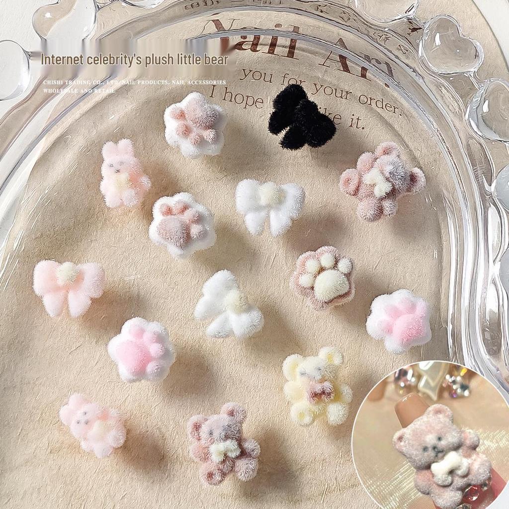 Little Panda Paw Bow Diy Flocking Resin Nail Art Decorations – Autumn/Winter Sweet Girl Style