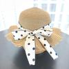 Girls' Korean Style Straw Beach Sun Hat with Sunscreen and Matching Bag