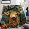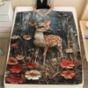 1Pc Vintage Deer Art Print Flannel Blanket, High Quality Comfortable for All Seasons, Home Decor, Warmth and Comfort, Perfect for Gifts