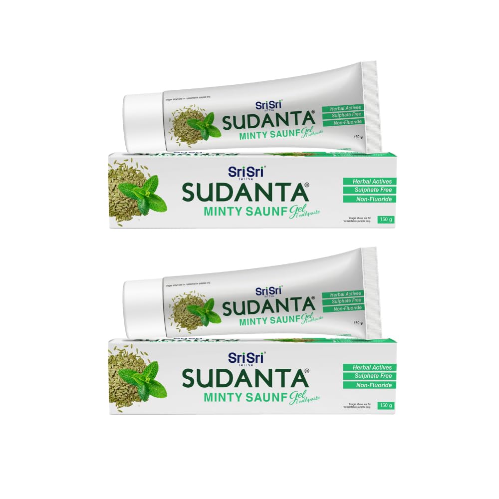 Sri Sri Tattva Sudanta Minty Saunf Gel Toothpaste 150g X Pack Of 2 Herbal Fresh Breath Gum Care