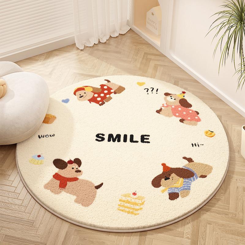 Cartoon Style Bedroom Decor Carpet Cute Round Carpets for Living Room Fluffy Soft Bedside Rug Thicken Plush Children's Floor Mat