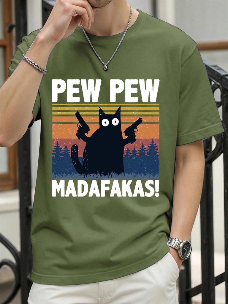 Pew Madafakas Cat Holding Handgun Prints TShirt Women Cotton Summer Tops Soft Loose ONeck Short Sleeve Tees Casual Clothes