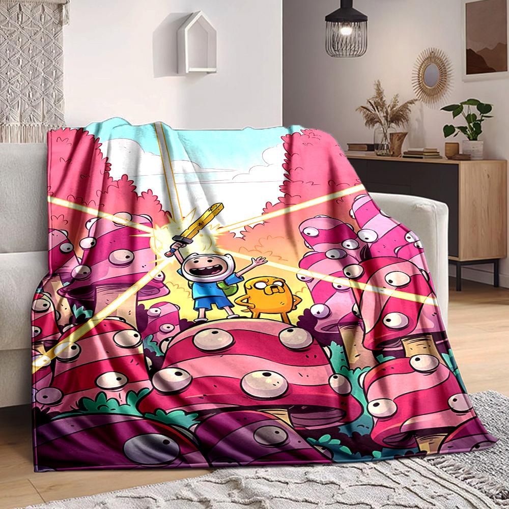 1pc Adventure Time Blanket Lightweight Flannel Throw For Sofa, Bed, Travel, Camping, Livingroom, Office, Couch, Chair, And Bed