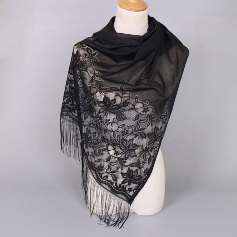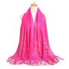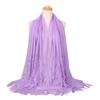 Cross-Border Solid Color Lace Scarf Cotton Blend Muga Silk Hollow Scarf Hollow Design Tassel Trim Mesh Scarf Casual Wear