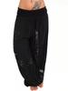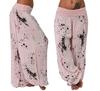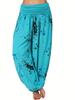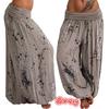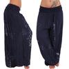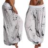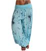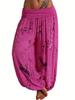 Women Casual Boho Print Pants Wide Leg Pants Loose Pocket Button Pants
