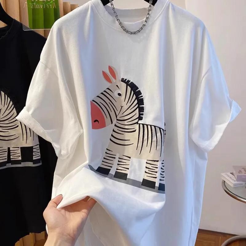 Women's Unisex Oversized Short Sleeve T-Shirt Cartoon Zebra Print Casual White Top