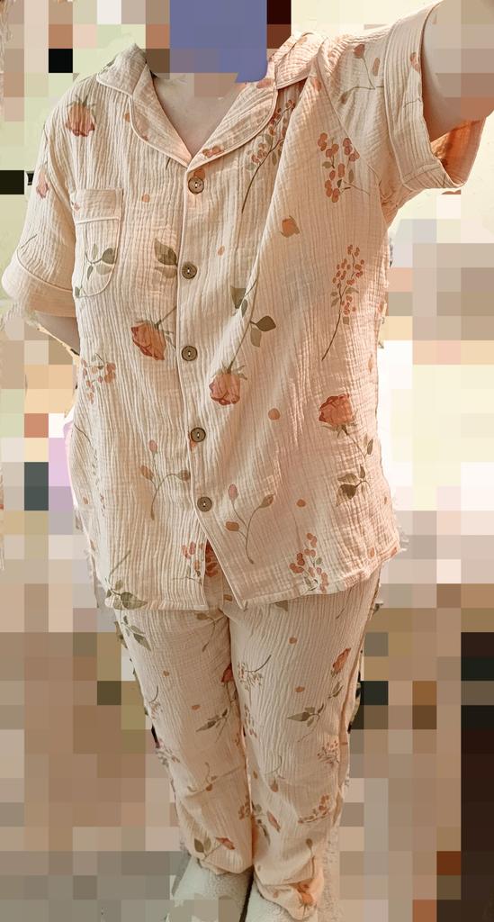 2026 New Spring/Summer Women's Pajama Set 100% Cotton Crepe Short Sleeve+Shorts+Pants 3-Piece Thin Cardigan Home Clothes Ladies