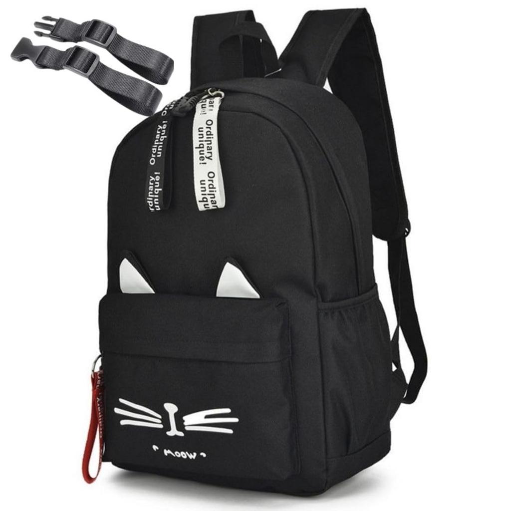 Copeflap Cat Backpack with Cat Ears for and Elementary School Students with Chest Strap Kids, Girls, (Black, Medium)