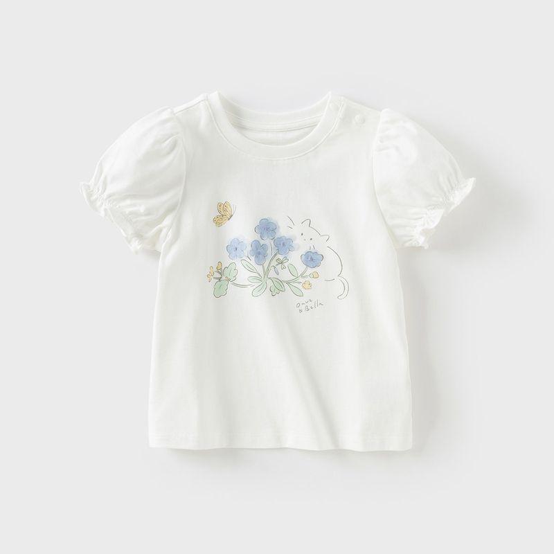 David Bella Kidsren's Short-Sleeved T-Shirt 2026 Summer New Style Baby Girl 5A Antibacterial and Anti-Mite Pure Cotton Thin Top