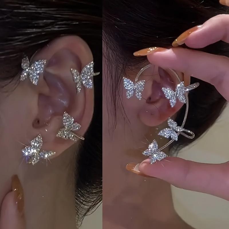 1Pair Butterfly Ear Hanging Fashion Versatile No Pierced Ear Clips Internet Celebrity Temperament Commuting No Pierced Earrings
