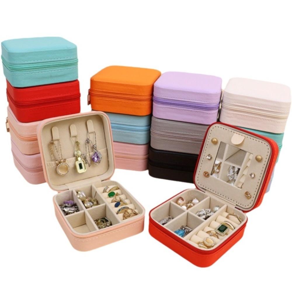 PU Leather Mini Jewelry Storage Zipper Closure Travel Jewelry Box Jewelry Organizer Display Box