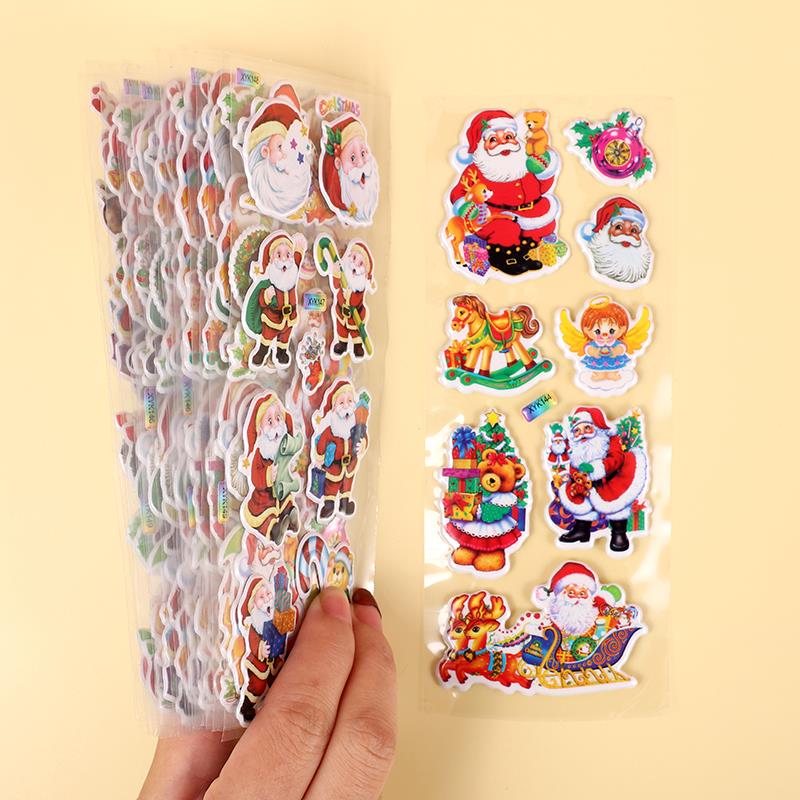 6/12Sheets Kids Puffy Stickers for Children Birthday Christmas Gift for Girl Boy Scrapbooking Cartoon Stickers Santa Claus TMZ