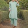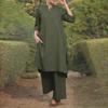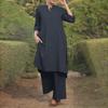 Fashionable Cotton Linen Long Sleeve Casual Drawstring Pants Set