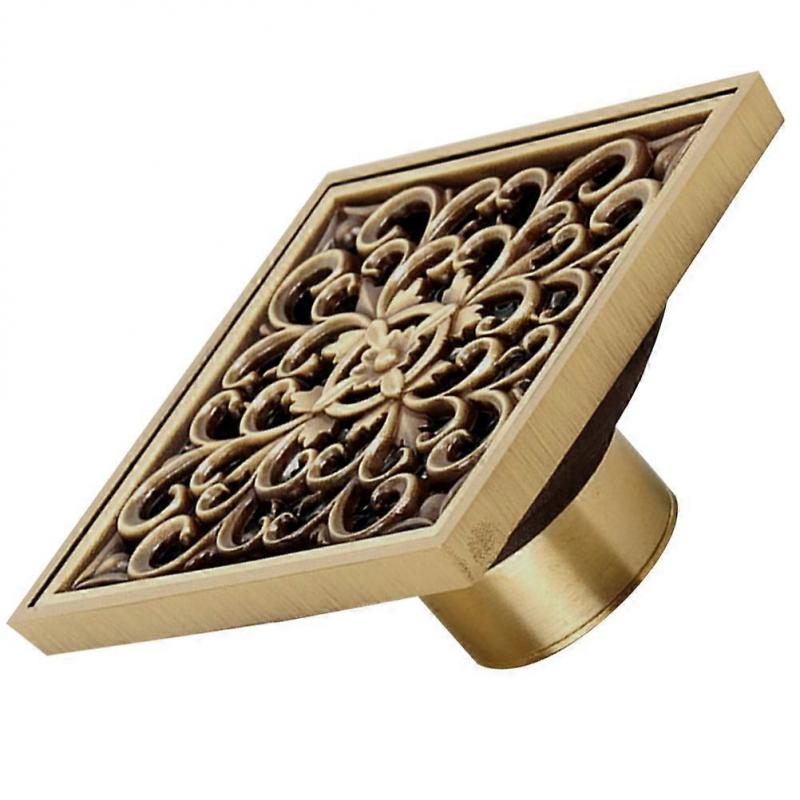 Copper Material For Floor Drain European Brass Shower Drain Bathroom Accessories 10x10cm Square Odor Prevention 1Set
