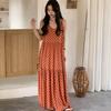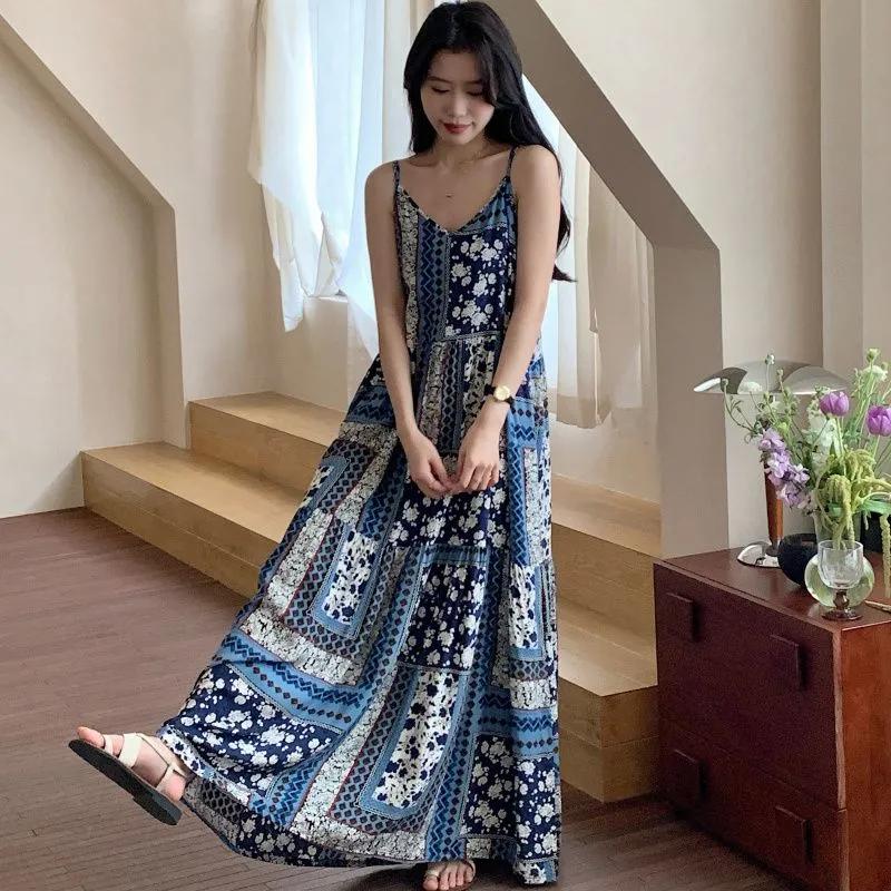 Women's Bohemian Floral Print Maxi Spaghetti Strap V Neck Summer Beach Dress