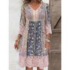 HNXC Women's Fashion Summer Spring Solid Color Print Lomg Sleeve V-Neck Casual Dresses
