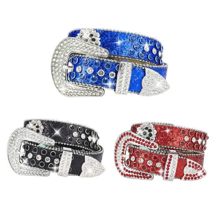 Rhinestones Studded Pin Buckle Belt for Adult Popular Sequined Belt All Matching Western Belt Glittering Belt for Dance