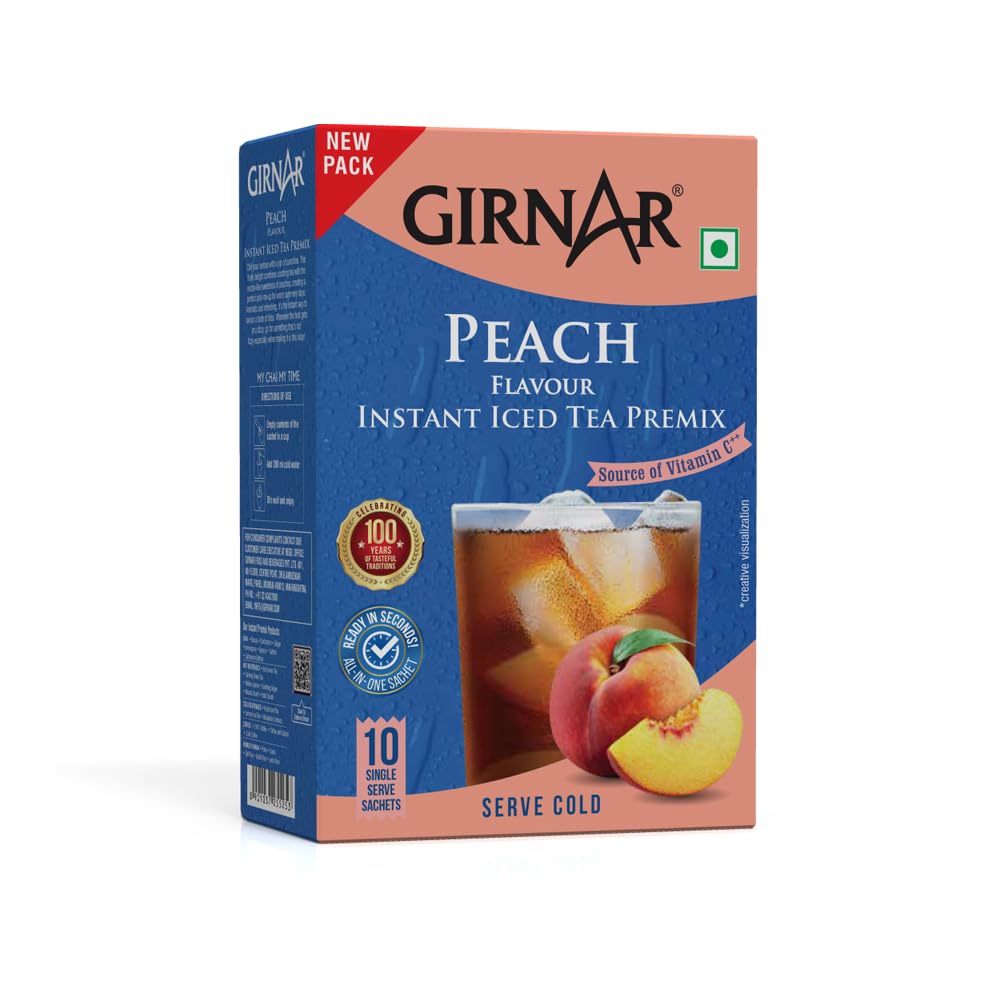 Girnar Instant Premix Iced Tea Peach Flavour 10 Sachets Refreshing Cold Drink Green Tea