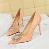 Fashion Comfort Party Pumps Super High Heels Serpentine Patent Leather Shallow Mouth Pointed Toe Crystal Buckle Single Shoes