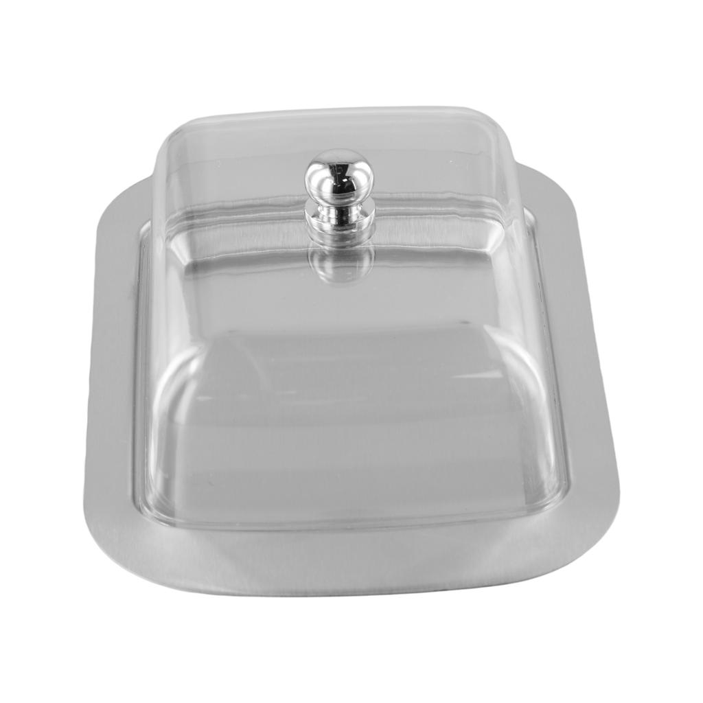 Clear Plastic Lid Stainless Steel Butter Dish Plastic Lid Butter Dish Dirtying Keep Butter Cool Prevent Slipping Serving Tray