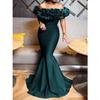 Batch Spring New Elastic Knitted Belt anti-European and American Women's Clothing Lotus Leaf One-word Shoulder Small Trailing Long Dress Dress
