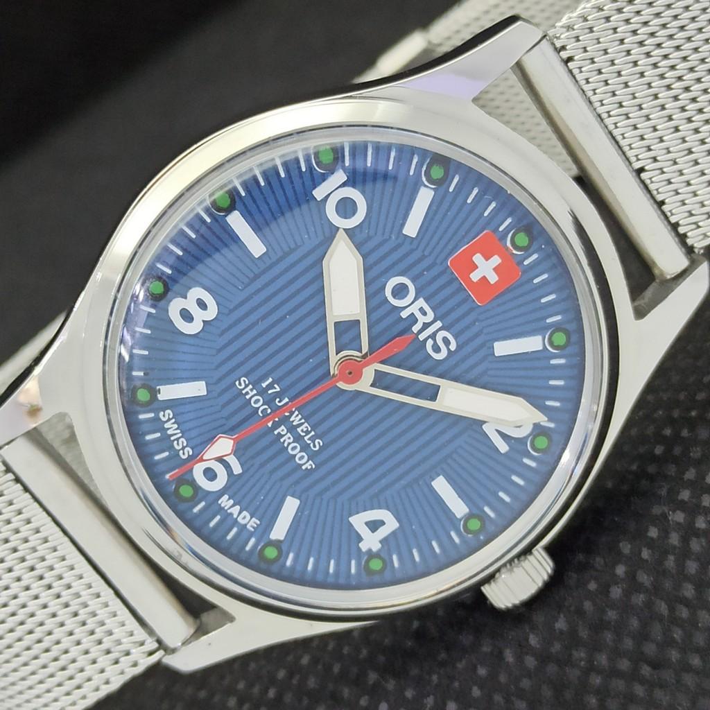 REFURBISHED ORIS WINDING SWISS MENS VINTAGE WRIST BLUE WATCH 558b-a296789-1