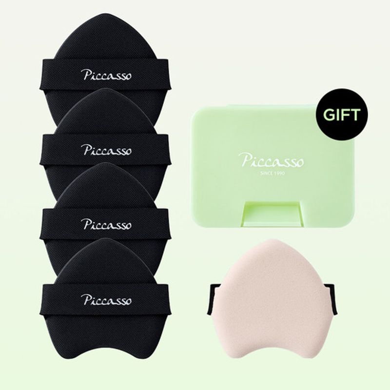 PICCASSO Tapping Cover Puff Set of 5 (+ Milk Green Sponge Case)