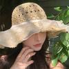 Straw Hat Seaside Hat Strapped Straw Hat Women's Travel Sunscreen Beach Sun Hat Lace Sun Hat