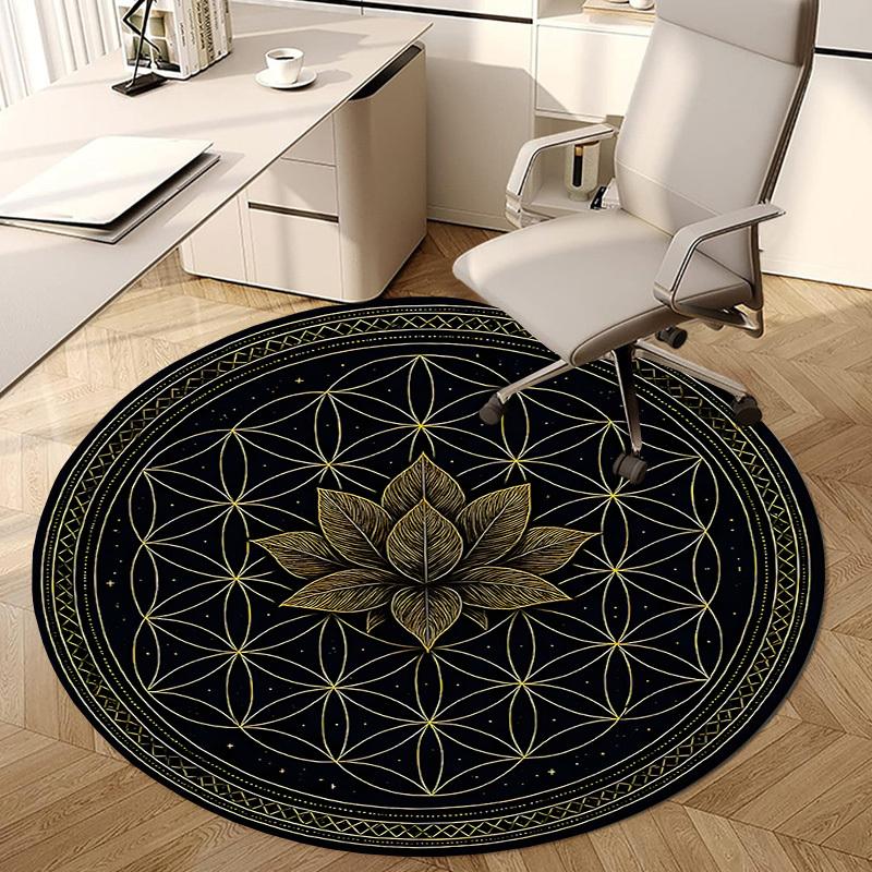 1pc Office Carpet Chair Mats Sacred Geometry Lotus Mandala Perfect for Decorating Office Chairs, Living Rooms, Or Bedrooms