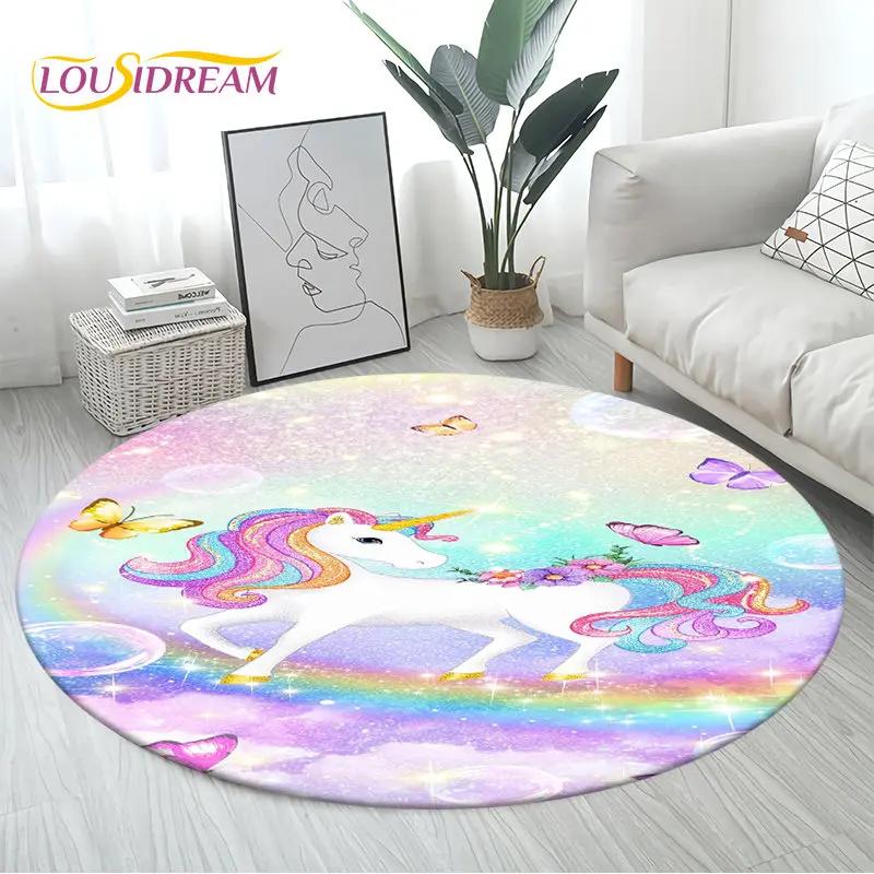 3D Cartoon Cute Unicorn Area Rug Large,Round Carpet Rug for Living Room Bedroom Sofa Decoration,Children Play Non-slip Floor Mat