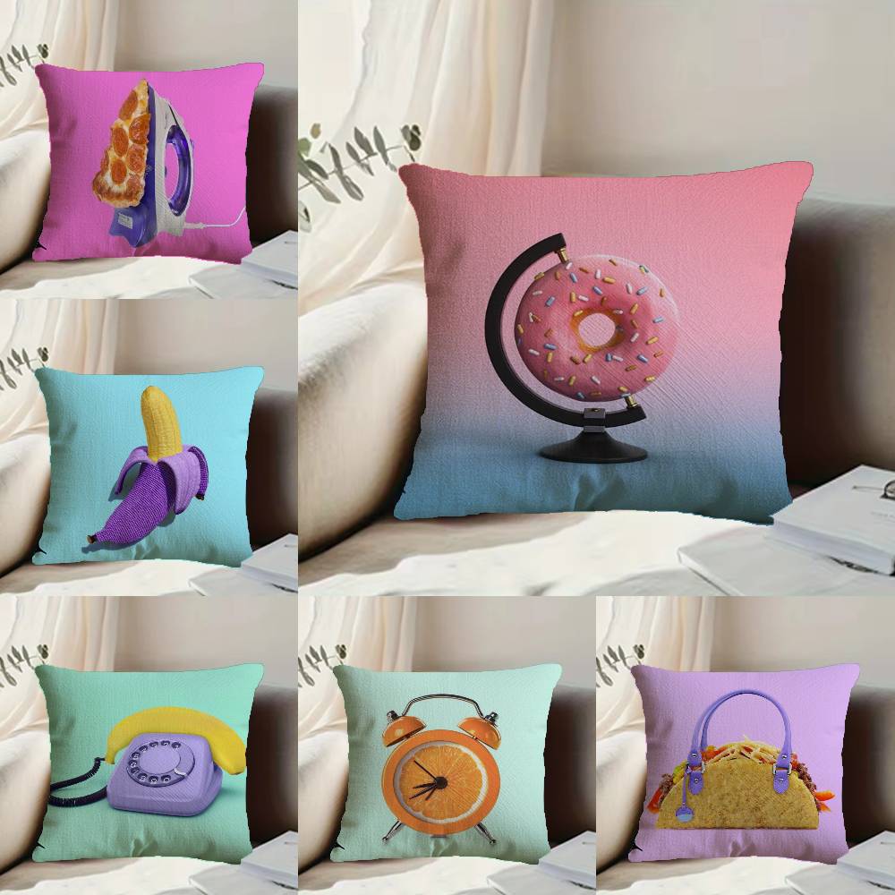 Food Fruit Print Creative Pillow Case Anti-dustmite Pillowcase Invisible Zipper Silky Short Plush Sofa Cushion Cover