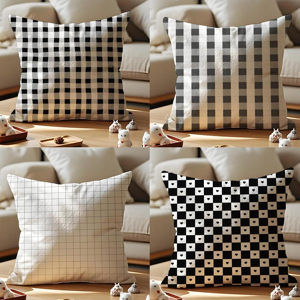 Black-and-white Pattern Cushion Cover Anti-dustmite Pillowcase Invisible Zipper Silky Short Plush Sofa Cushion Cover