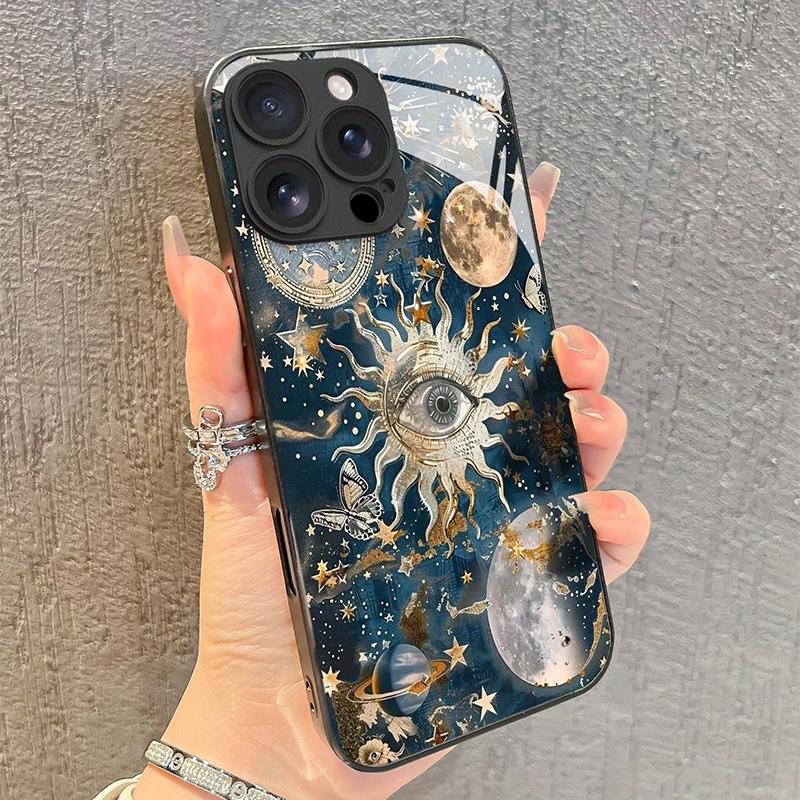 Sun Eyes Pattern Tempered Glass Phone Case For iPhone 17 16 Pro Max 15 14 13 12 11 16E 17 Air 7 8 Plus XR XS X Shockproof Cover