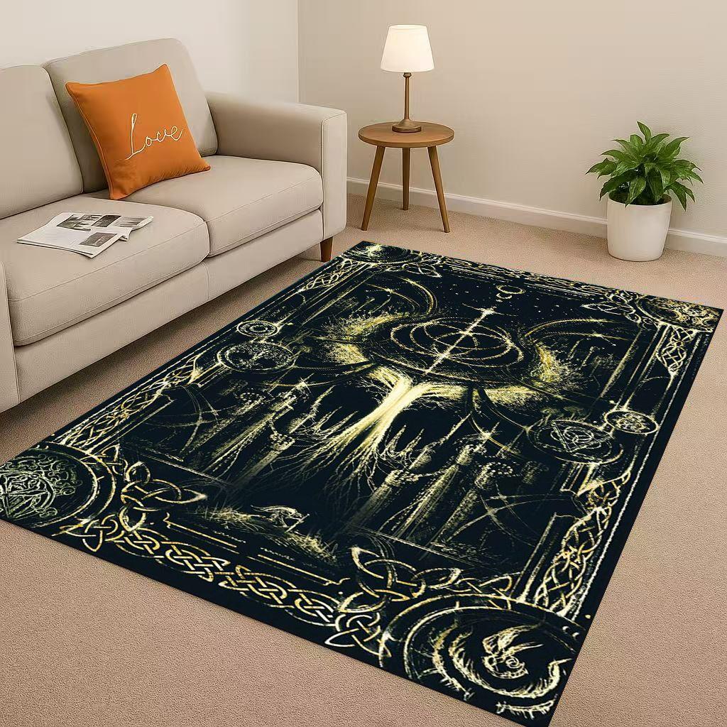 3D Nordic Viking Totem Vegvisir Rune Valhalla Valknut Living Room Non Slip Area Rug Soft Carpet for Bedroom Sofa,Home Doormat