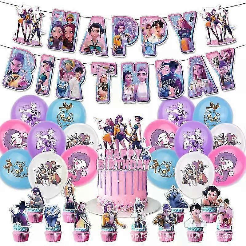 Kpop Demon Hunters Birthday Theme Party Decorations Banner Cake Balloons For Kid A