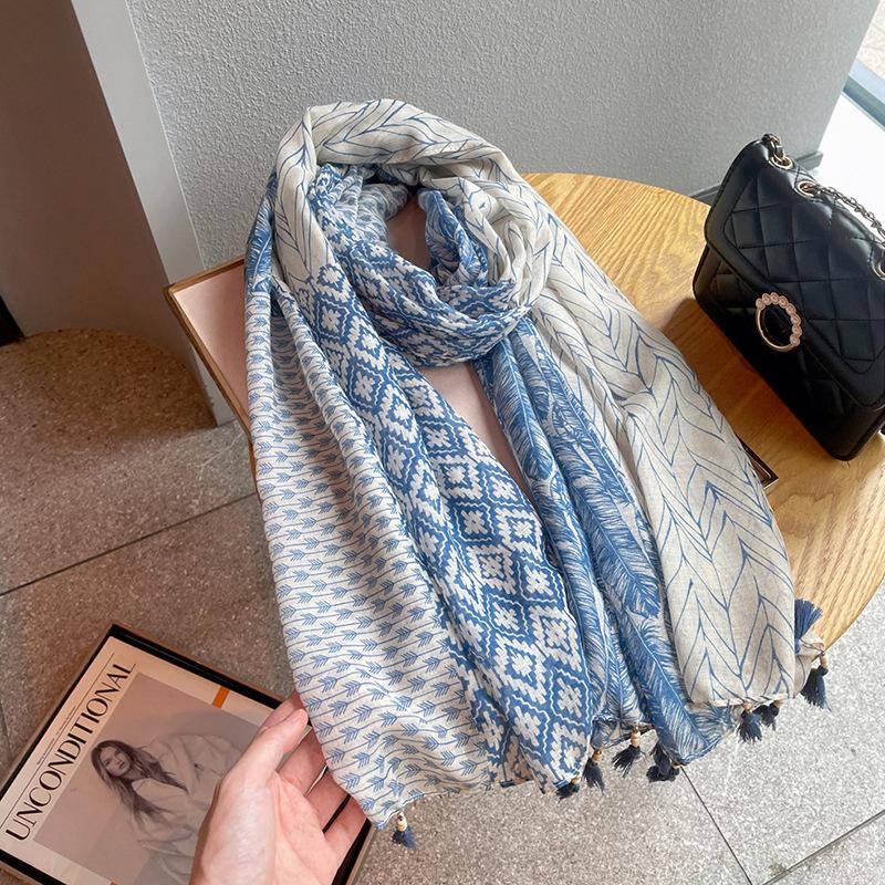 Scarf Shawl High-End Feel Female Fresh Artistic Ethnic Style Versatile Cotton Linen Feel Spring Autumn Summer Sunscreen Silk Scarf