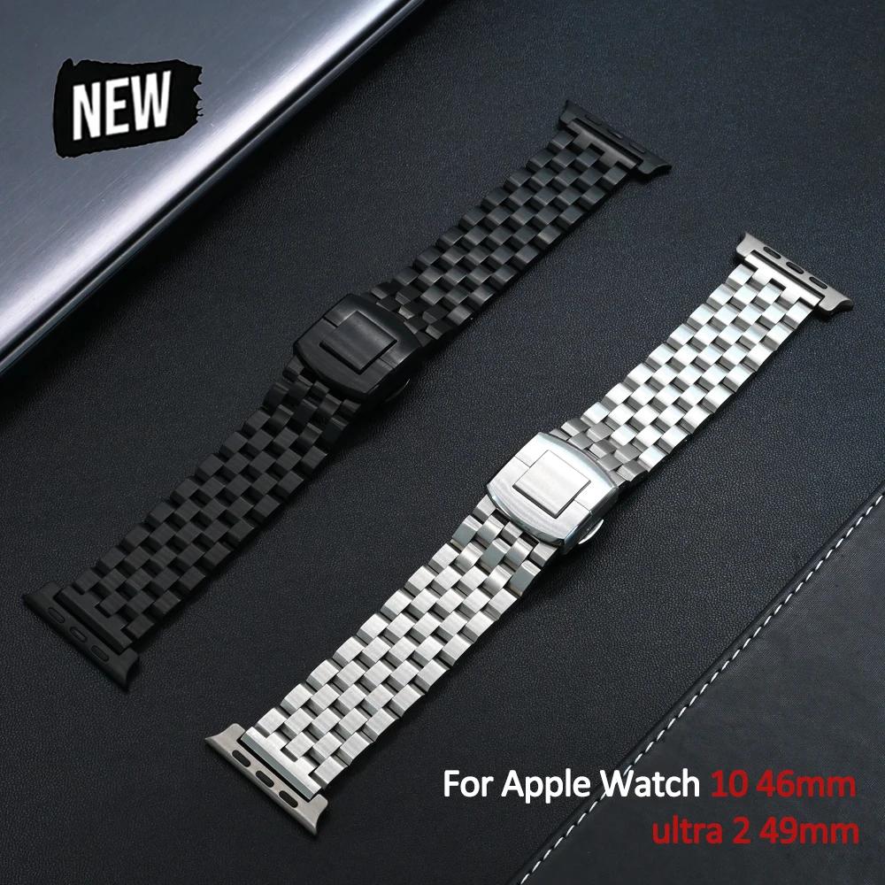 Stainless Steel Luxury Strap for Apple Watch 10 46mm Ultra 2 49mm Metal Bracelet for Iwatch Series 9 8 7 6 5 4 Se 45mm 44mm Band