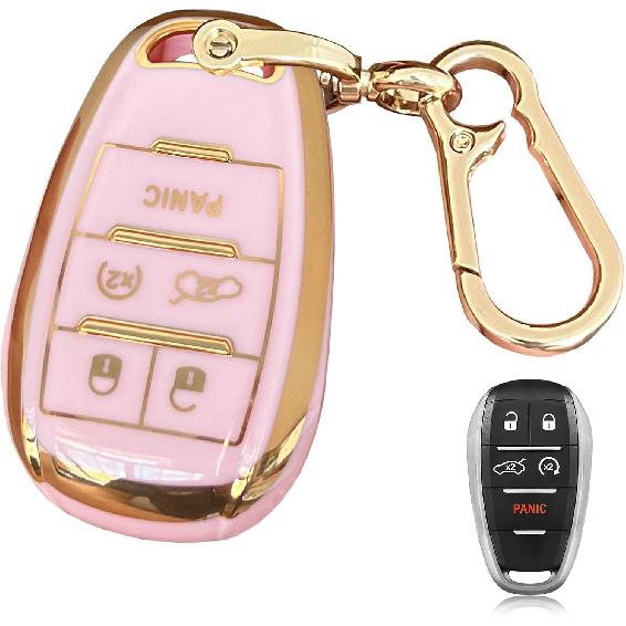 Key Fob Cover for Alfa Romeo Giulia Stelvio Tonale 5 Button Keyless Entry Remote for Car Key Protection Accessory (Pink-Gold)