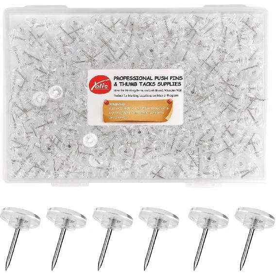 Push P 500-count Flat Clear Thumb Tacks Steel Point and Plastic Head for Corkboard and Wooden Photo Wall (Clear-500)