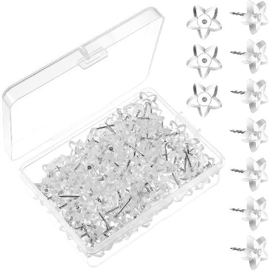 150 Pieces Star Push P Clear Plastic Thumb Tacks with Steel Point Decorative Star Pushp with Plastic Box for Cork Board, Bulletin Board, Office, Home