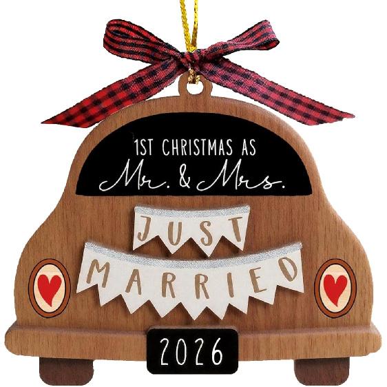 Wedding Gifts for Couples 2026 Newly Married Hanging Car Ornament Gift with Buffalo Plaid Bow Tie Just Married 3.9" Rustic Bridal Shower Decor for