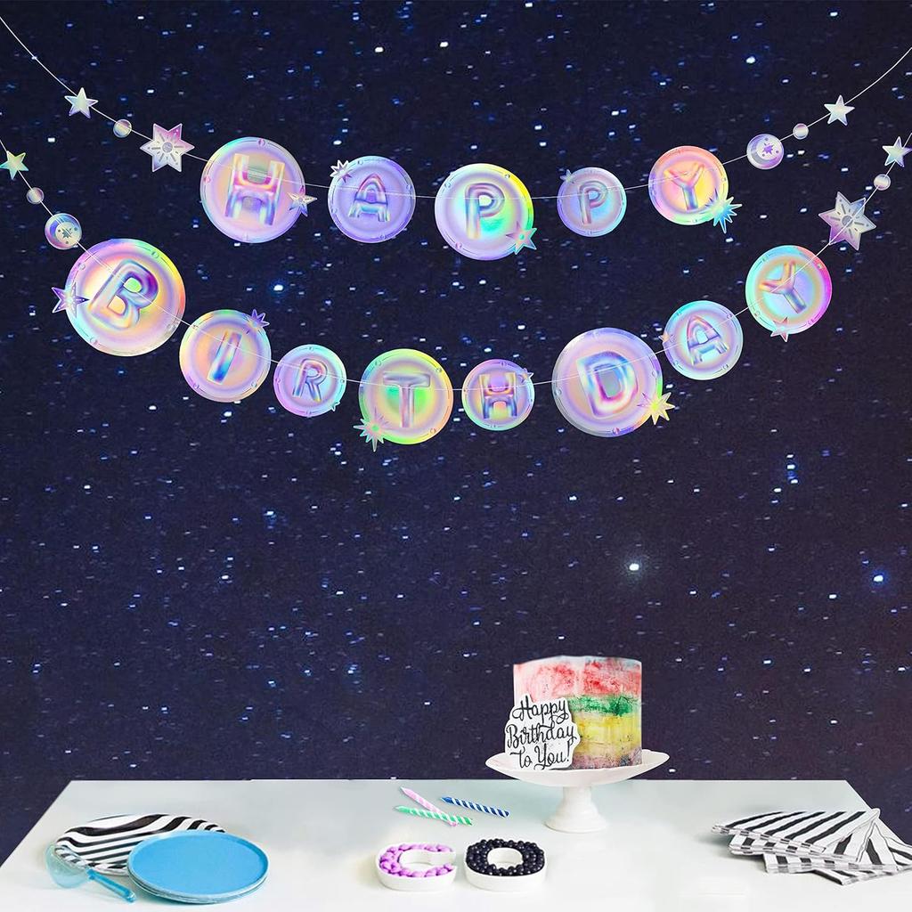 Cheerland Iridescent Galaxy Happy Birthday Banner Moon Star Birthday Party Decorations Space Garland Party Decor Planet Theme Happy Bday Letter Sign