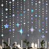 🌟PACKAGE CONTAINS- 3 strings of matellic iridescent star circle dot garlands in 3 different styles, 9 set of large hanging iridescent star circle dot cutouts(in 3 styles), the total length is 53.7 feet.