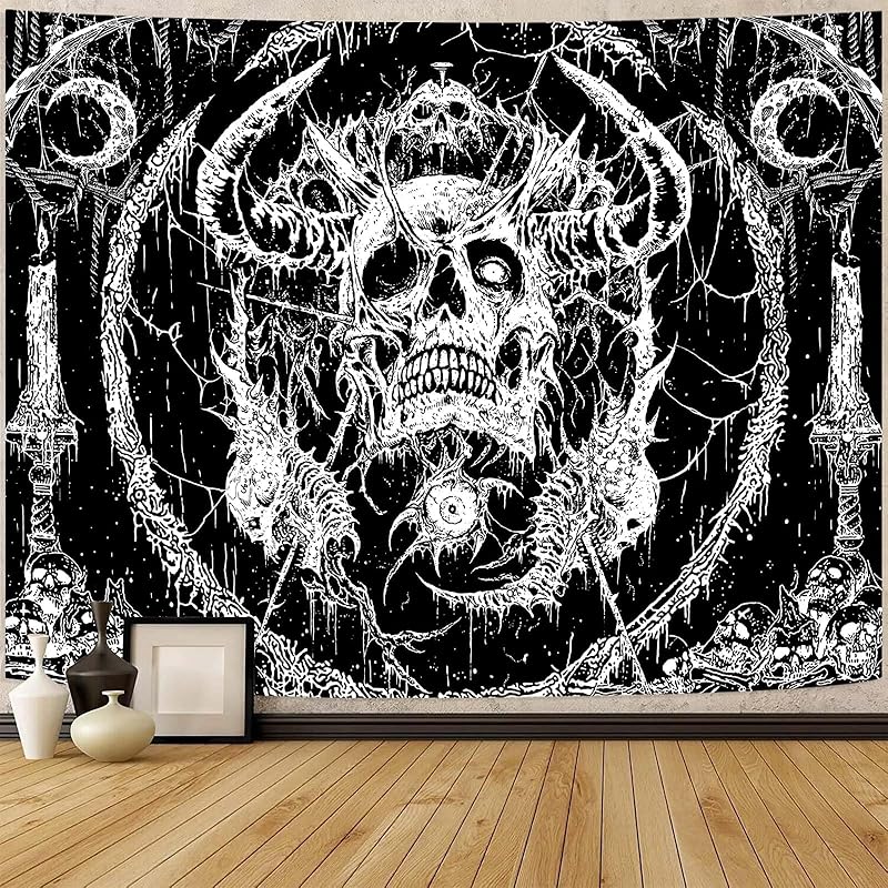 Lifeella Skull Tapestry, Gothic Horror Moon Skeleton Mystic Dark Tapestries for Bedroom Grunge Wall Hanging Black and White 36 X 48 Inch