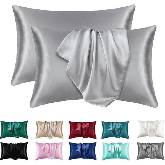 Satin Silk Pillowcases for Skin and Hair,Set of 2 Satin Pillow Cases for Women with Envelope Closure,Soft Breathable Smooth Cooling Silk Pillow