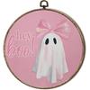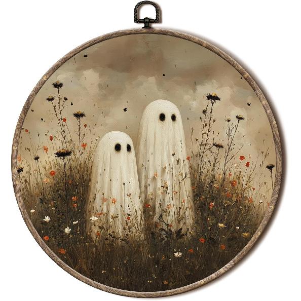 EGVQK Vintage Halloween Ghost Round Wall Art, Moody Wildflower Spooky Ghost Framed Canvas Prints Wall Art, Halloween Round Canvas Hanging Walls Decor