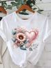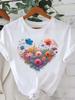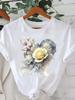 (Asian Size) Sweet Flower Cute Tee Clothing Lady Female Top Printed Women Casual T Shirt Fashion Graphic Short Sleeve T-shirts
