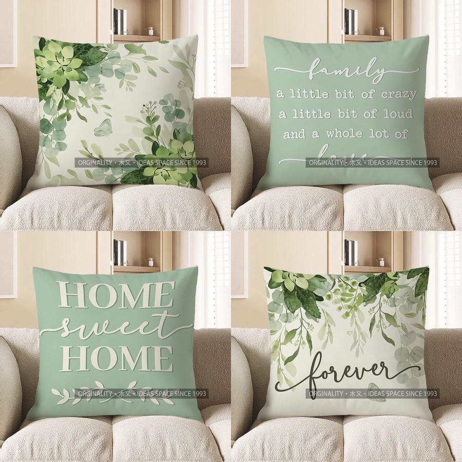 Home Decor Green Leaf And Butterfly Patterned Pillow Cover Pattern Cushion Cover Suitable For Sofa Bedroom Car Pillow Cover