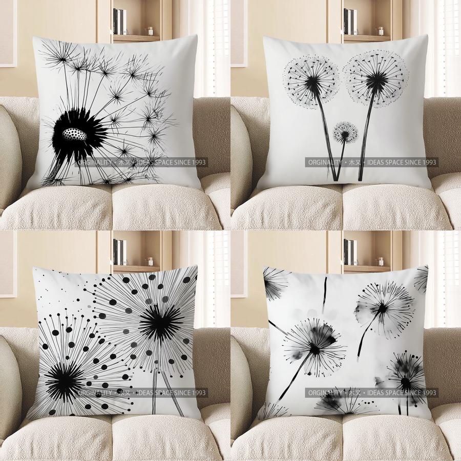 Home Decor Black Dandelion Pattern Decorative Pillow Cover Pattern Cushion Cover Suitable For Sofa Bedroom Car Pillow Cover