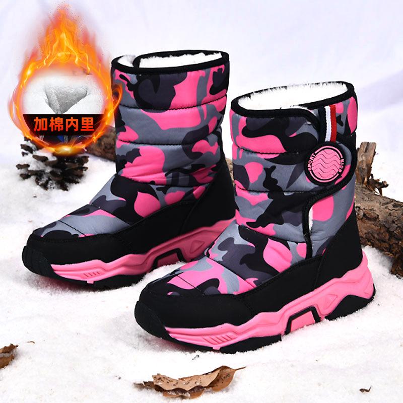 PLUS Children's Snow Boots Winter Children's Velvet Warm and Cold Cotton Boots Non-slip Waterproof Cotton Shoes